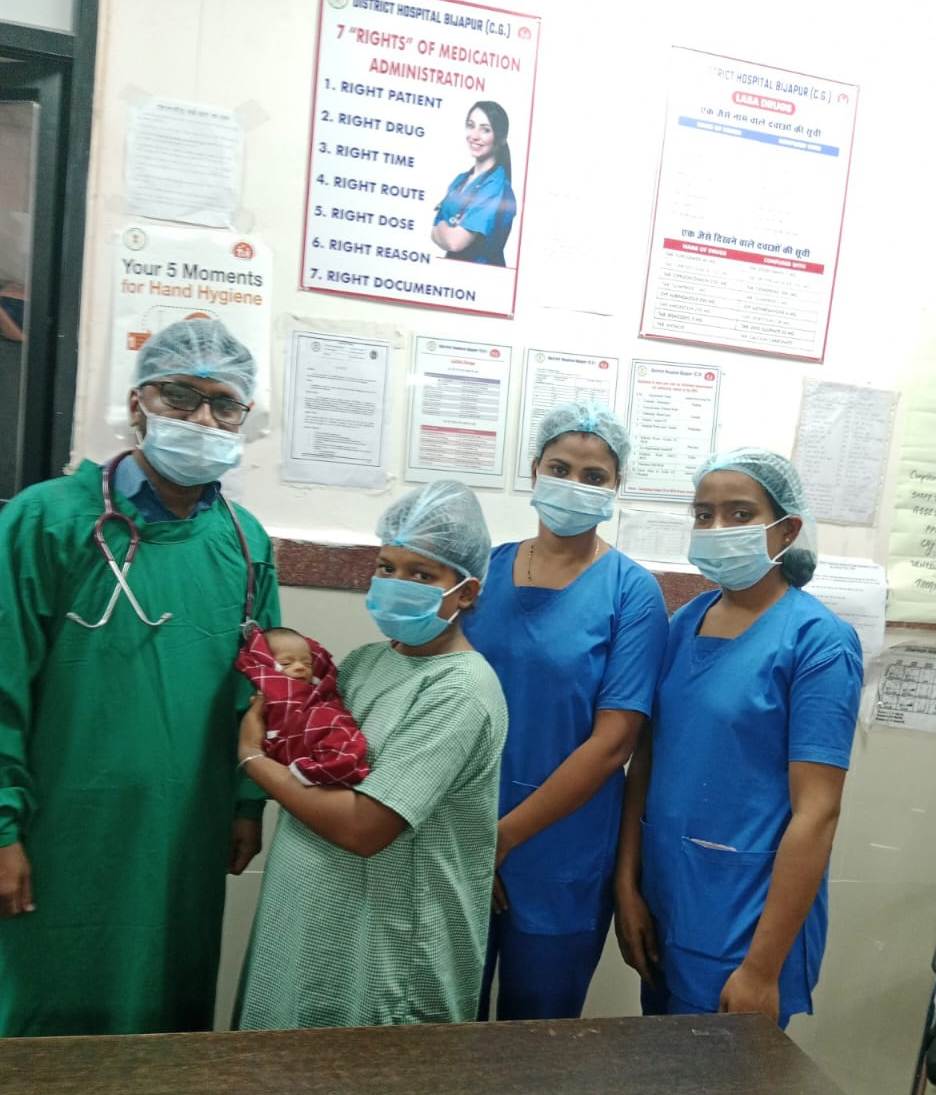 जिला चिकित्सालय बीजापुर के मदर-चाइल्ड हॉस्पिटल उत्सव में 26 अप्रैल 2023 को एक नवजात शिशु का जन्म हुआ। प्री मेच्योर होने के कारण जन्म के समय बच्चे का वजन मात्र 01 किलोग्राम था और फेफड़े कमजोर होने के कारण उसे सांस लेने में तकलीफ़ हो रही थी। स्पेशल न्यू बोर्न केयर यूनिट में डॉ. मंगेश मस्के ने शिशु को इन्क्यूबेट कर वेंटिलेटर पर रखा। लगभग 10 दिनों तक शिशु का इलाज चला, जिससे उसका वजन बढ़ कर 1.53 किलोग्राम हो गया। स्वस्थ होने पर शिशु को 6 मई को डिस्चार्ज भी कर दिया गया।