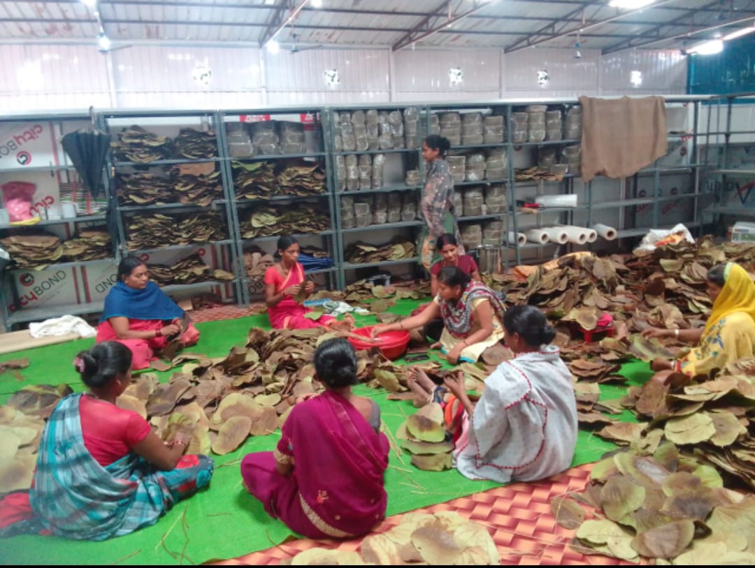 दोना-पत्तल निर्माण कर लक्ष्मी समूह की महिलाएं बन रहीं आत्मनिर्भर