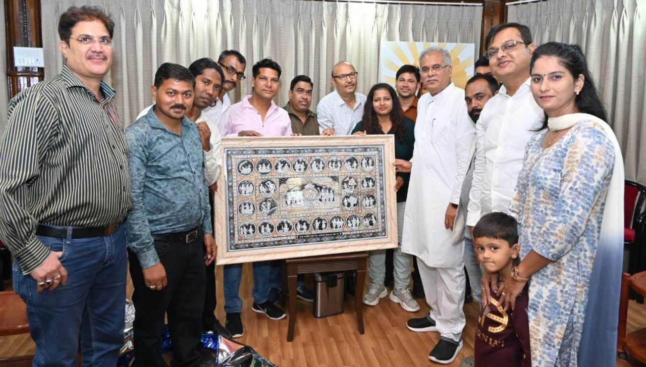 भारती श्रमजीवी पत्रकार संघ के प्रदेश अध्यक्ष नितिन चौबे ने मुख्यमंत्री को पटचित्र की विशेषताओं के बारे में जानकारी दी